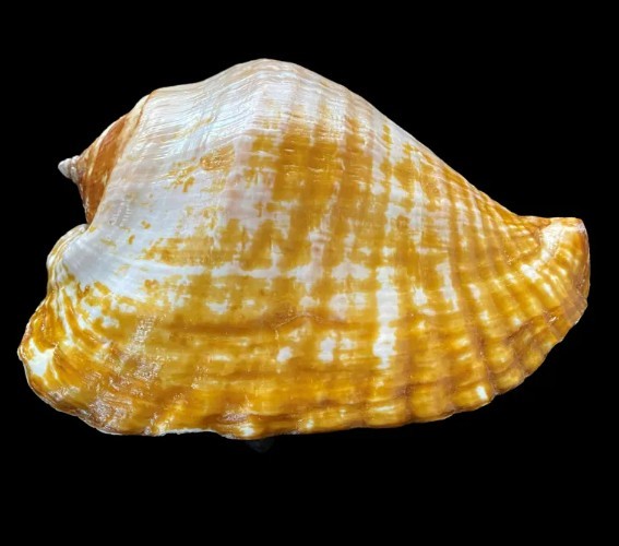 Il représente un Strombidae sans aucun doute. Même s’il est très stylisé, il est probable que ce soit un Titanostrombus galeatus (Swainson, 1823), susceptible d’être pêché sur la côte est du Mexique. Les lignes de dos notamment sont particulières et très peu d’espèces présentent une telle régularité.