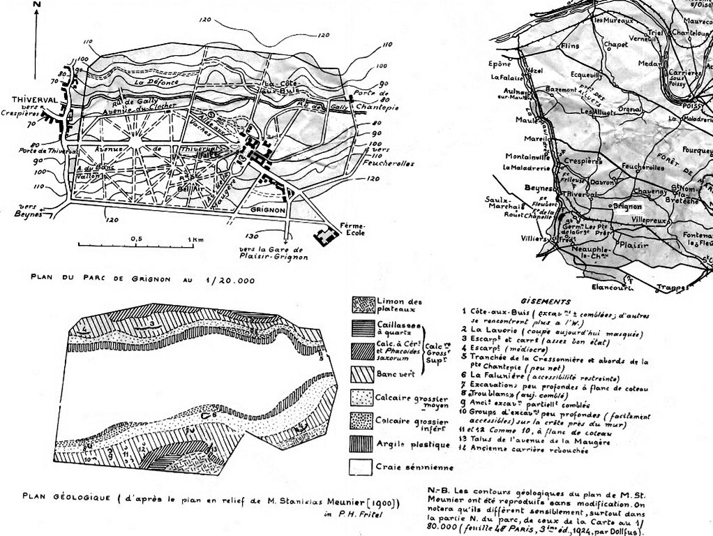 En 1900, à l’occasion du Congrès International de Géologie, Stanislas Meunier réalise une maquette représentant la géologie du parc de Grignon. Celle-ci sera ensuite reproduite en 1910 par P.H. Fritel dans son « Guide géologique de la région parisienne« .