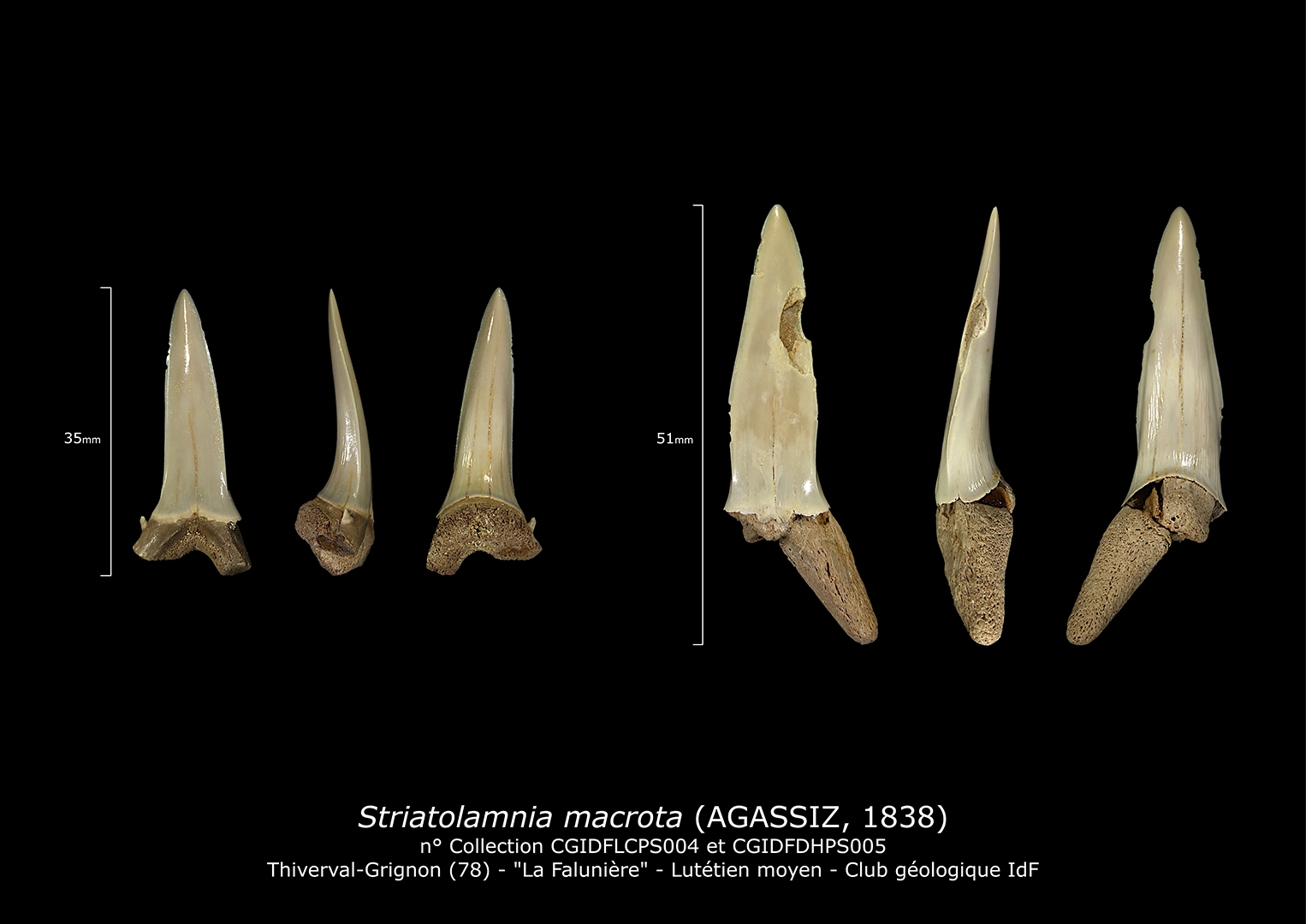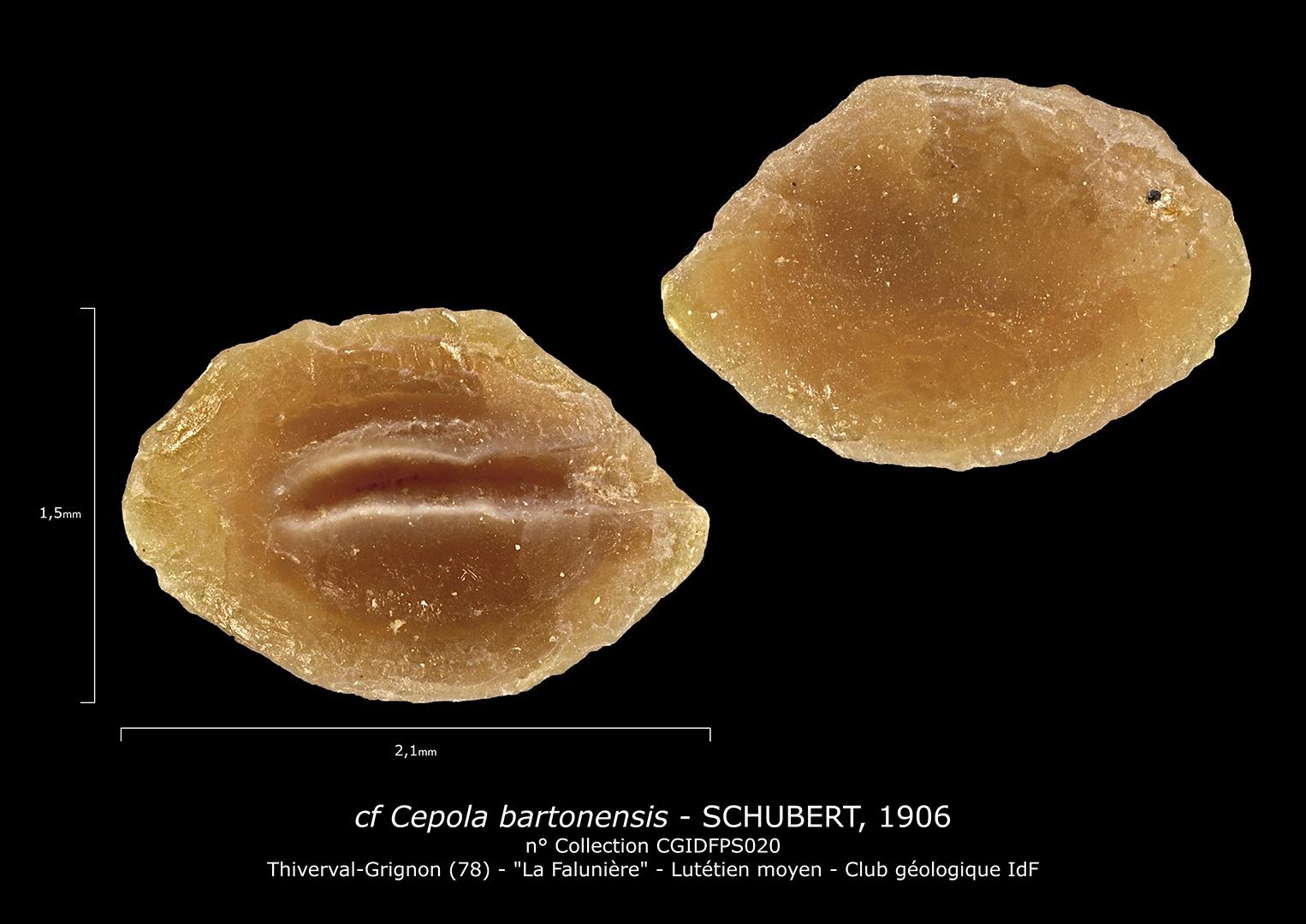 Les miniatures de fossiles sont classées dans l’ordre de la numérotation attribuée par M. Cossmann dans ‘l’Iconographie complète des coquilles fossiles de l’Éocène des environs de Paris’ (Cossmann et Pissaro 1904 – 1913).