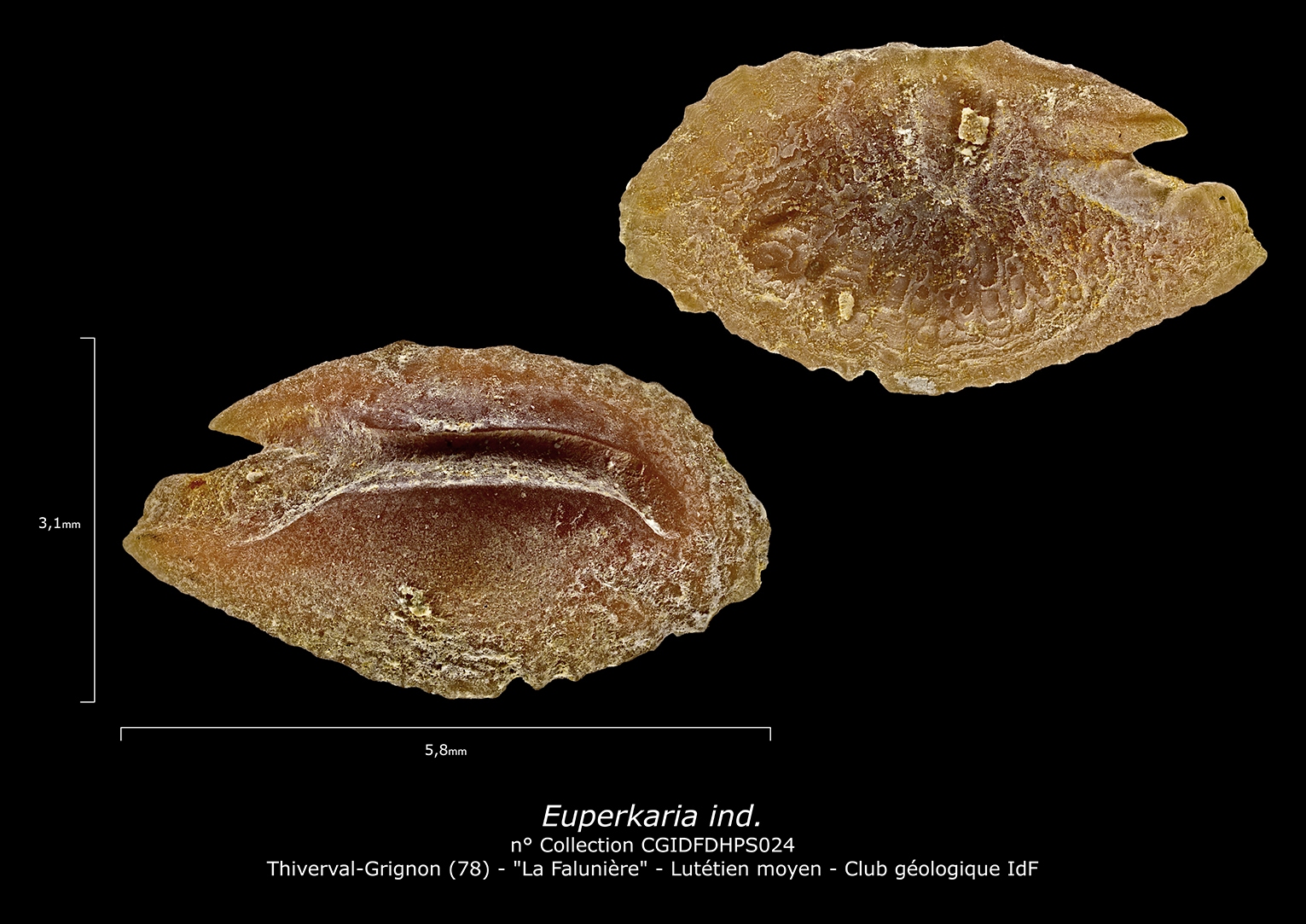 Il est possible de consulter la fiche de synthèse sur les Foraminifera. D’autres spécimens sont figurés sur la page « Microfossiles » de la falunière.